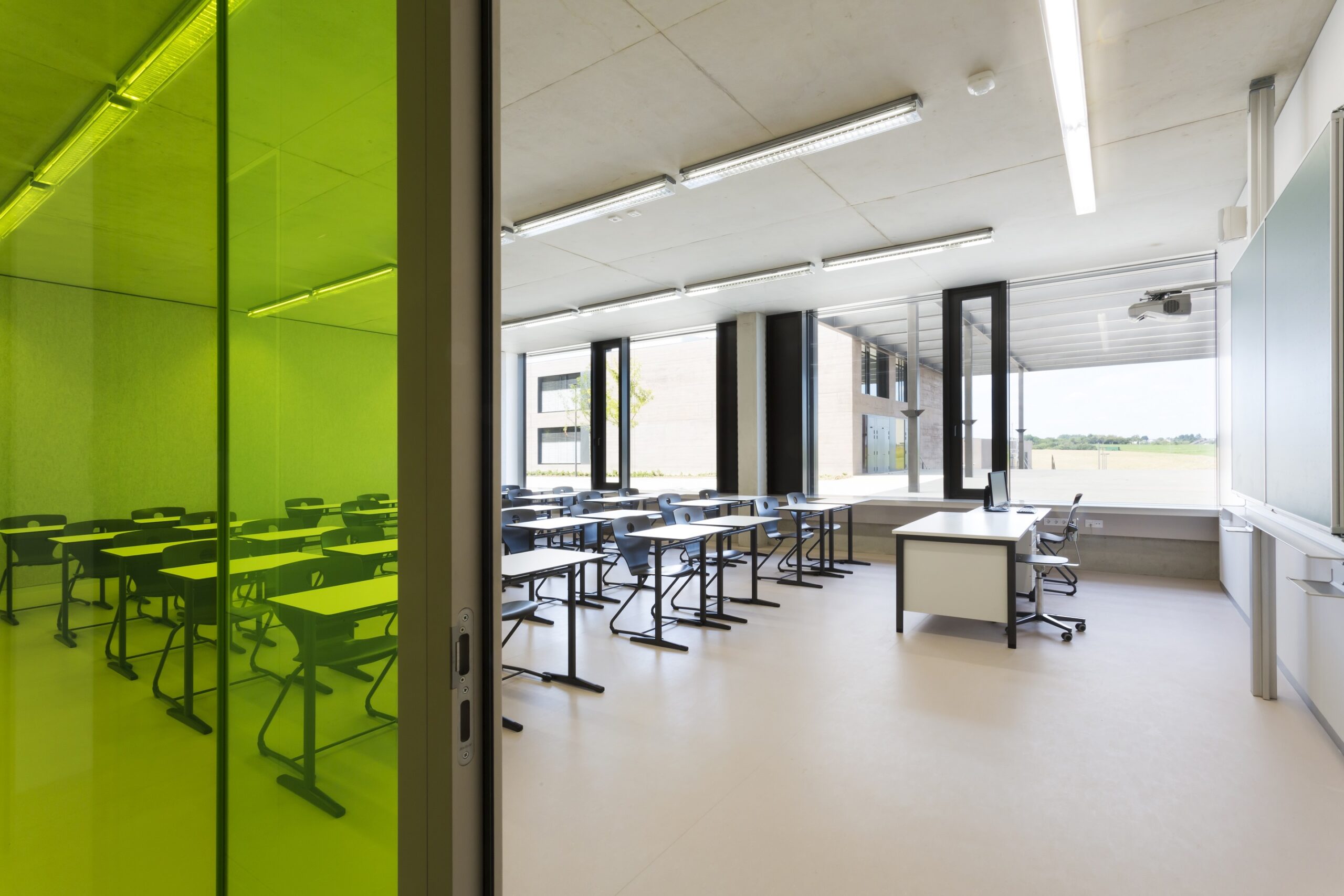 Le construit reflète l’ambition pédagogique de l’éducation actuelle et conditionne celle qui sera mise en place dans les années à suivre. Les espaces conçus servent au rassemblement des élèves dans les salles de classe mais permettent aussi de se retrouver en groupe en des places qui sont de simples extensions des couloirs. Ces espaces intérieurs parfois de double hauteur favorisent des rencontres informelles au gré du passage d’une classe à l’autre. Les couloirs ne sont pas de simples voies de circulation mais sont prévus au service des activités qui s’appuient sur ces espaces moins normés.
