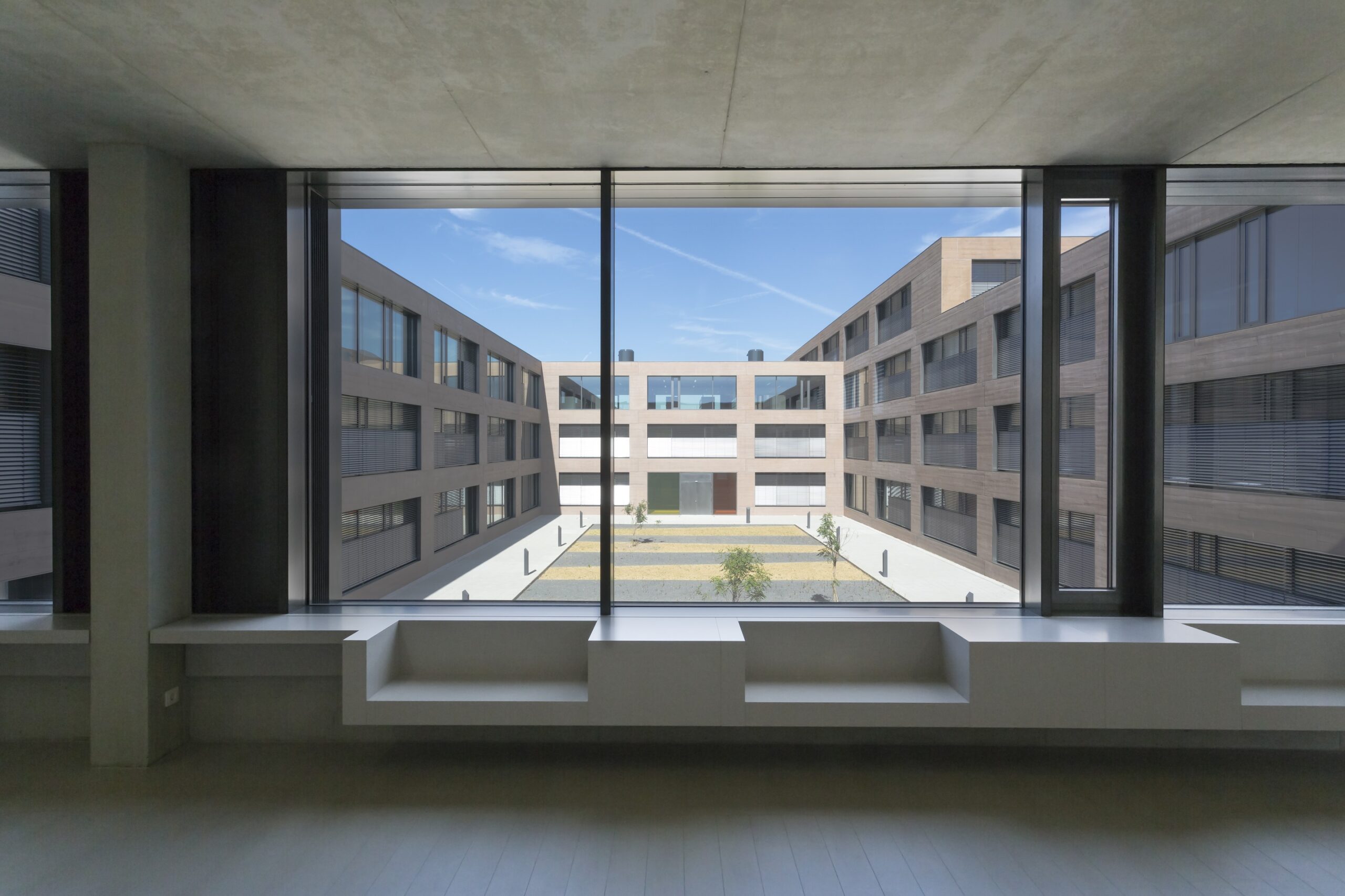 Les différents bâtiments offrent aux élèves un lieu de vie qui est marqué par la qualité des espaces intérieurs. Chaque bâtiment dispose d’une cour centrale intérieure et d’un auvent donnant sur le jardin central. Cette cour sert aussi de point de repère depuis l’intérieur du bâtiment, les couloirs étant rythmés par les perspectives ouvertes sur cet espace de récréation.