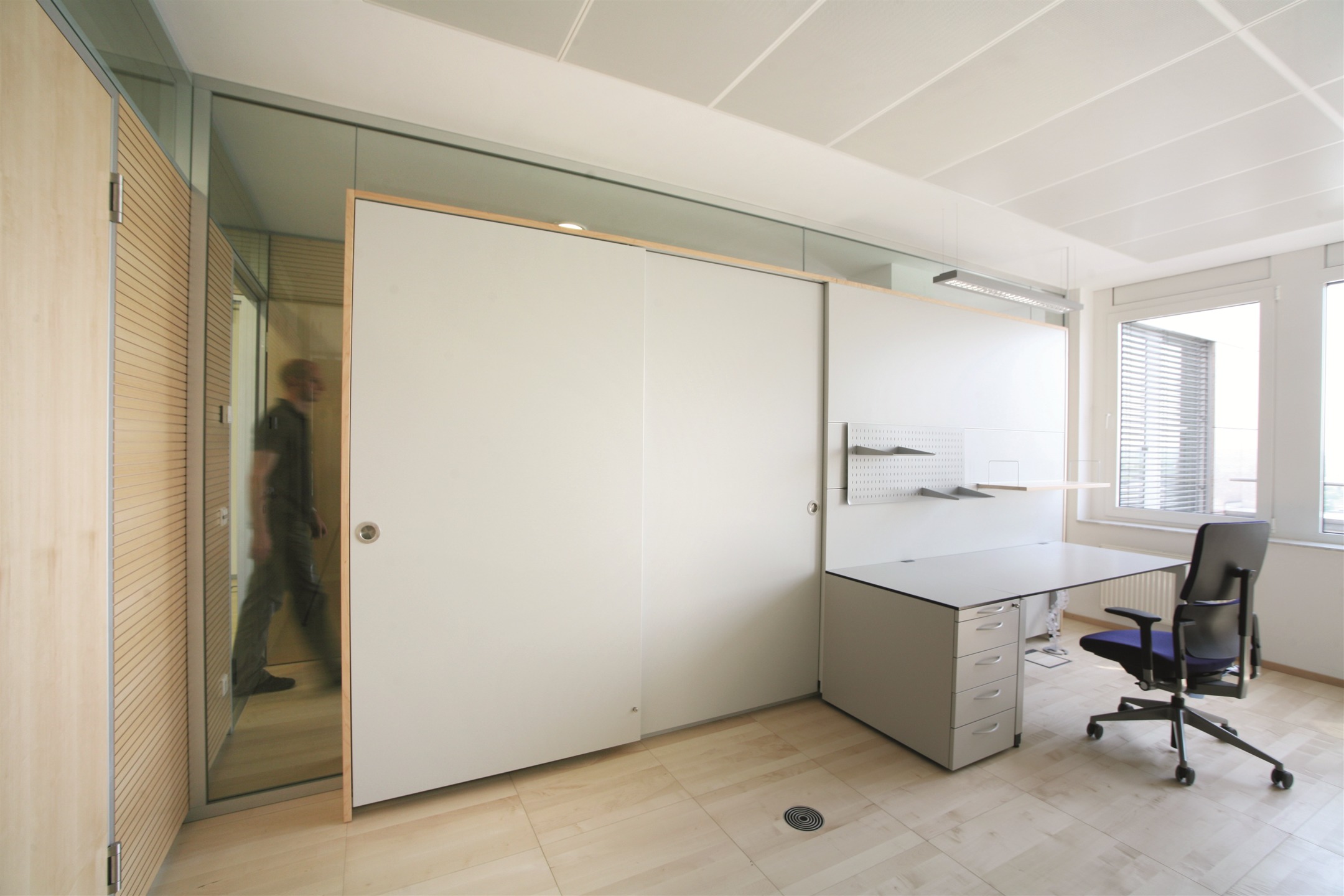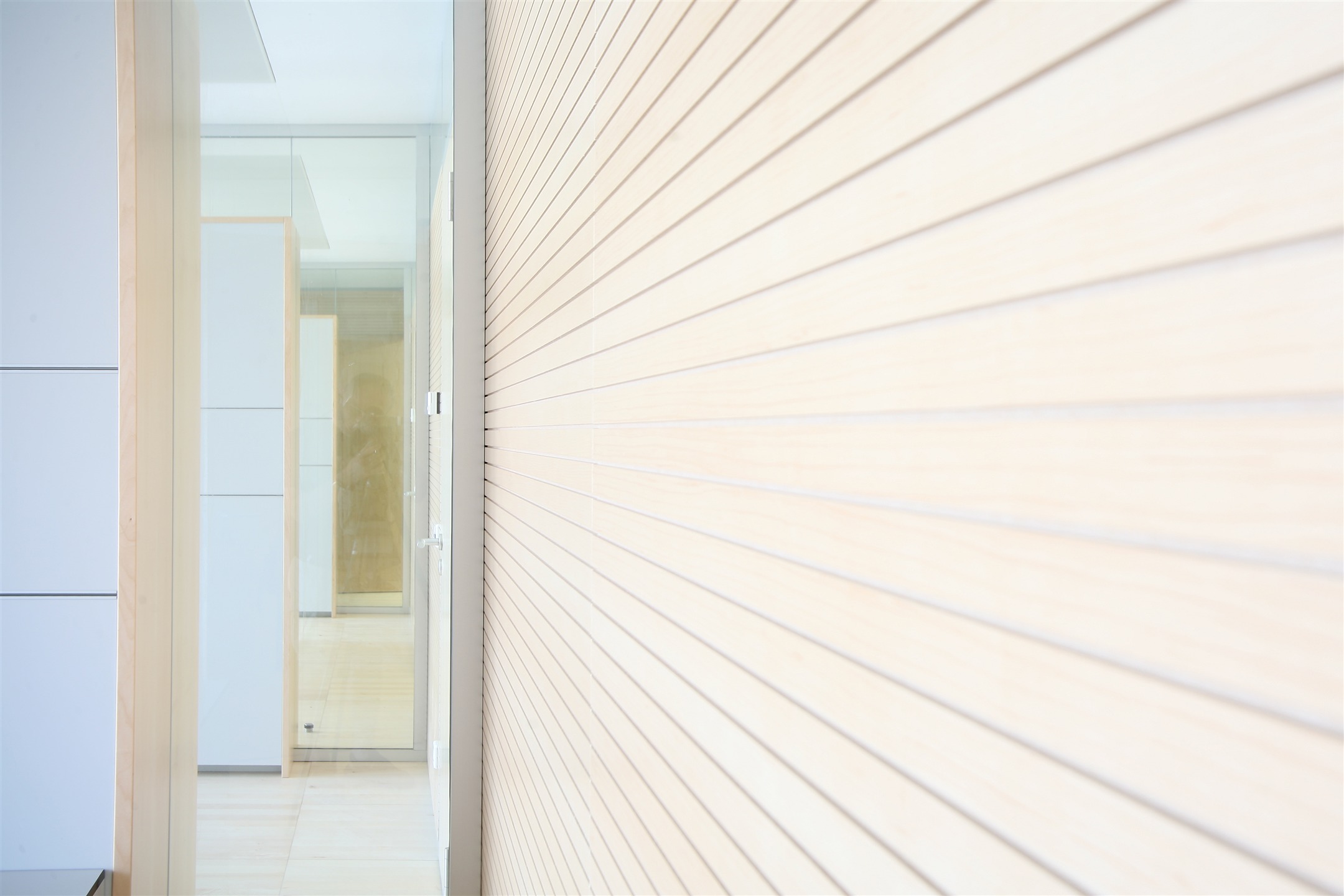 les bureaux individuels sont organisés autour d’un noyau central recueillant la circulation et les locaux secondaires tels les archives, les zones de conférence, ou zones sanitaires. deux escaliers spacieux relient les différents services répartis sur trois étages. au rez-de-chaussée des salles modulables servent de lieu de conférence et de communication. une zone de restauration fonctionnelle est desservie par une salle sobre intégrée naturellement au projet.