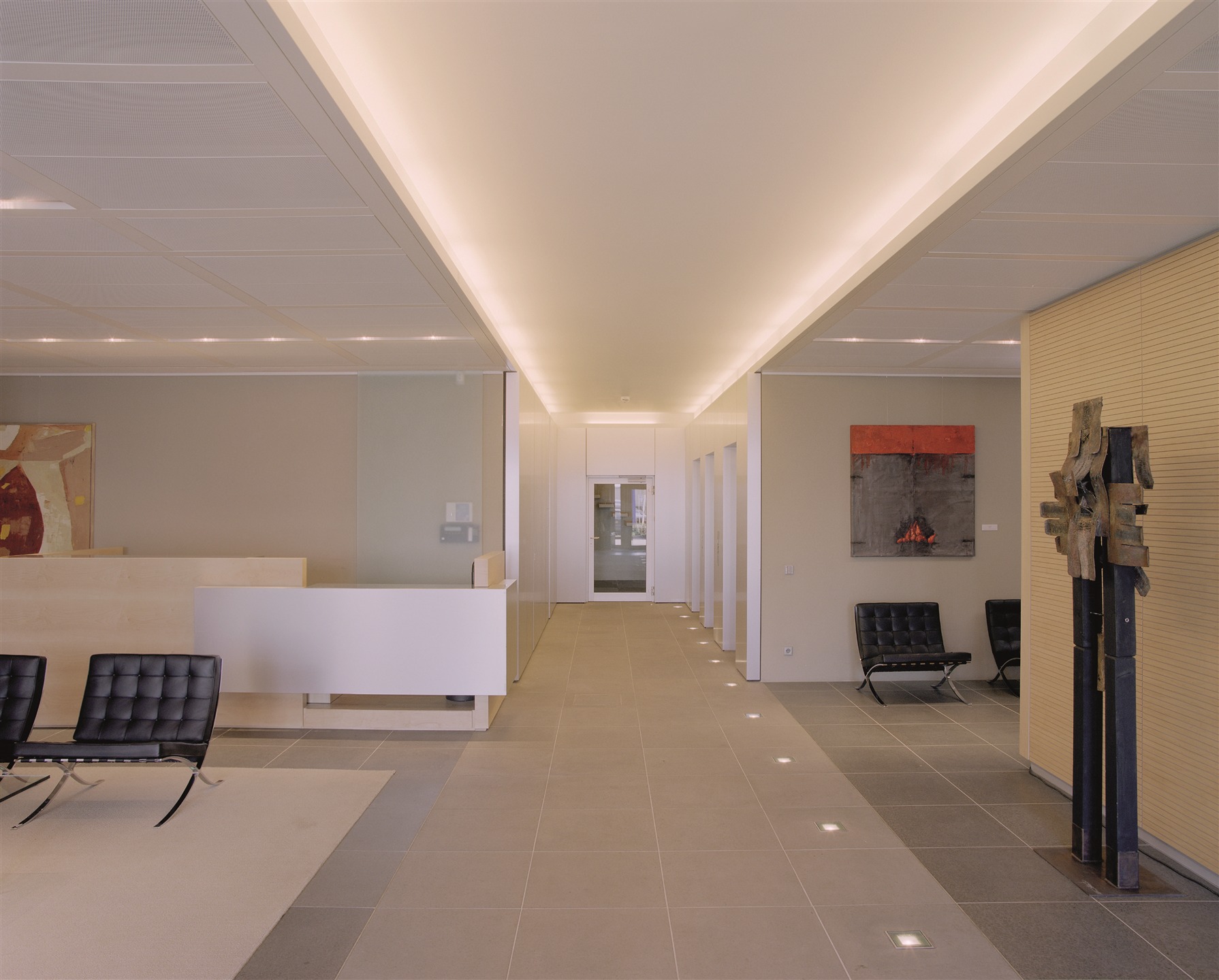 dans son ensemble les moyens techniques propres au bâtiment ainsi que les ressources de communication sont intégrées avec la plus grande discrétion pour créer un environnement de travail efficace et raffiné.